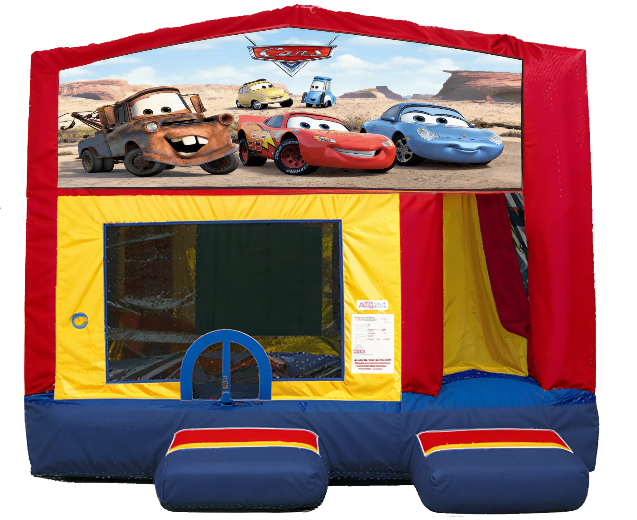 Lightning McQueen and Mater are ready to party in your backyard! Our Cars 4-N-1 Moon Bounce Combo offers a large area for the kids to jump, shoot hoops, climb the ladder, and slide down the tall slide. It’s perfect if your child loves the movie Cars and it’s the theme of your party.