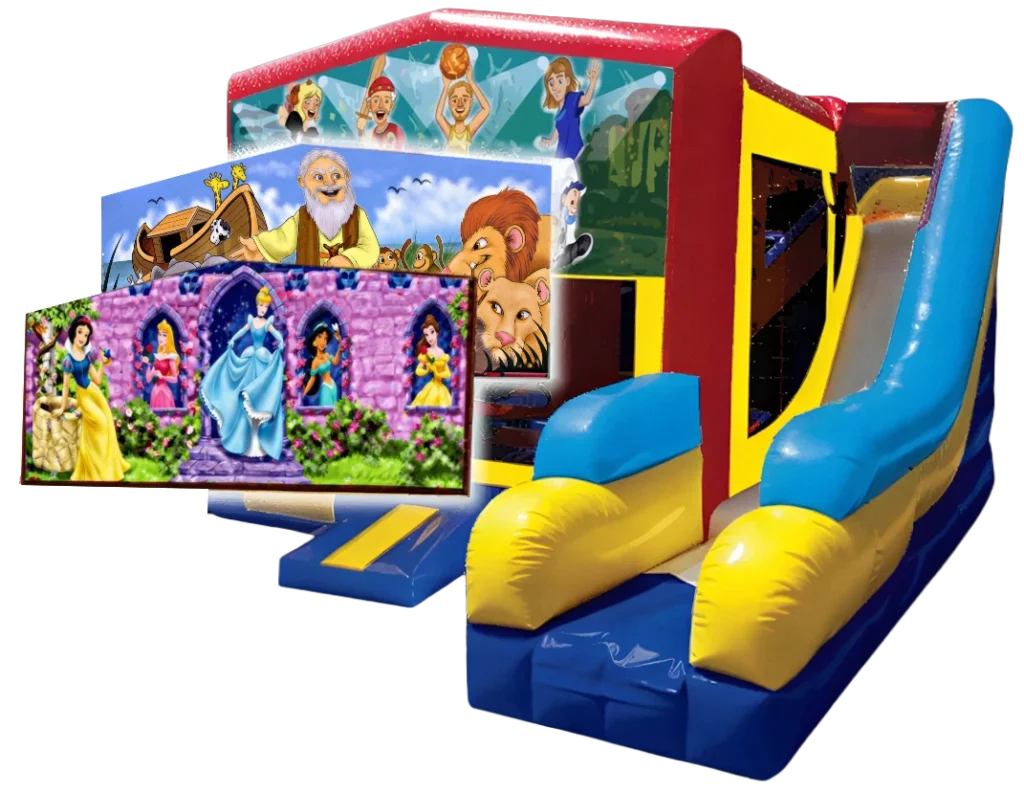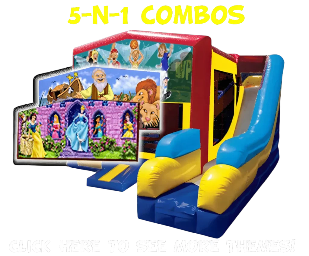 Our 5-in-1 bounce house combos come in dozens of themes and great for events of all sizes and age groups.