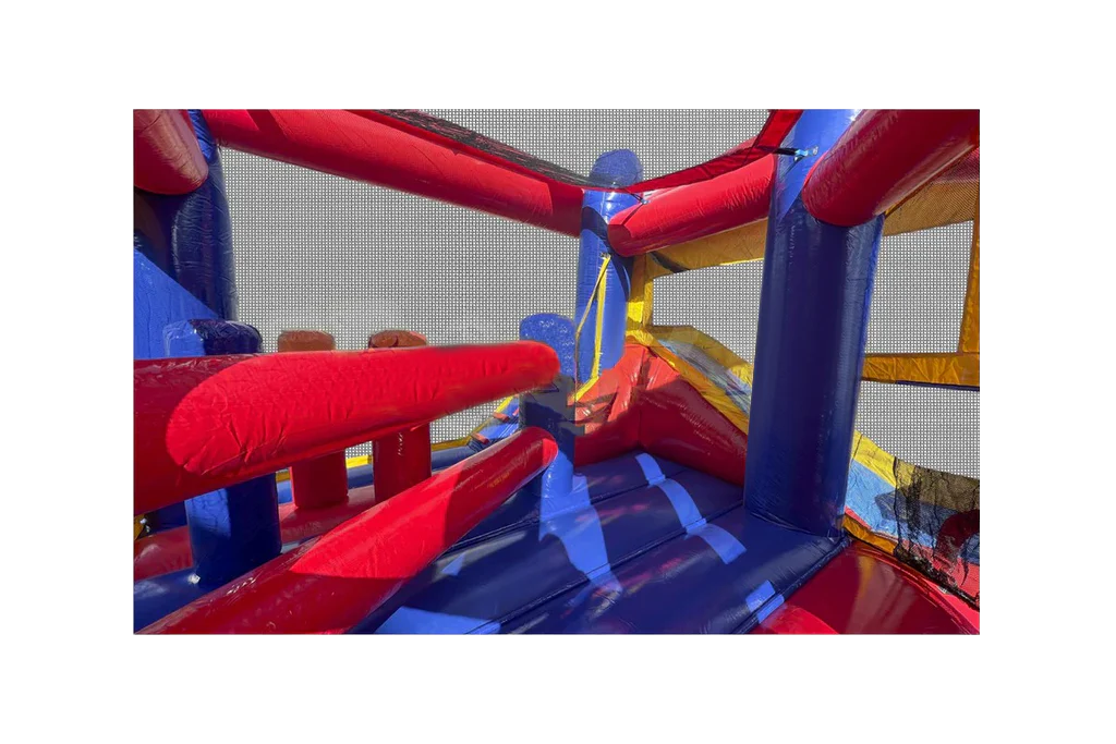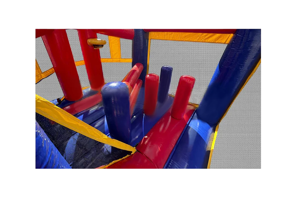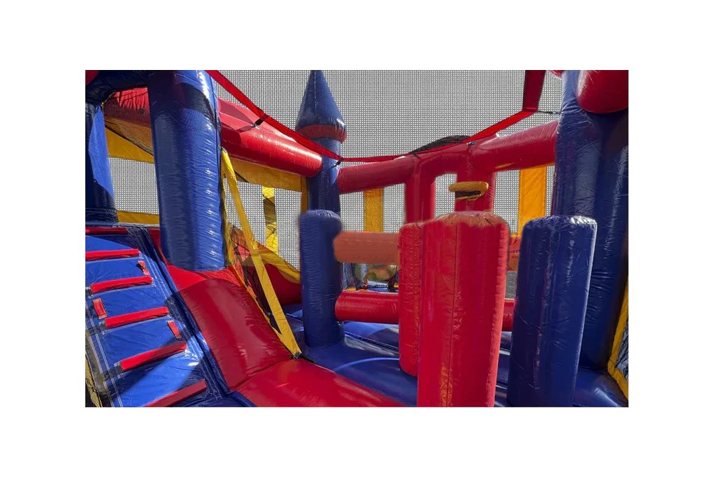 If you are planning an event that requires keeping kids entertained for hours on end, our Castle 5-N-1 Activity Center can provide that for you! This inflatable is filled with endless fun, as it includes five different ways to play. Kids can jump, shoot hoops, dodge through obstacle pop ups, and climb up to the top to race down the slide!