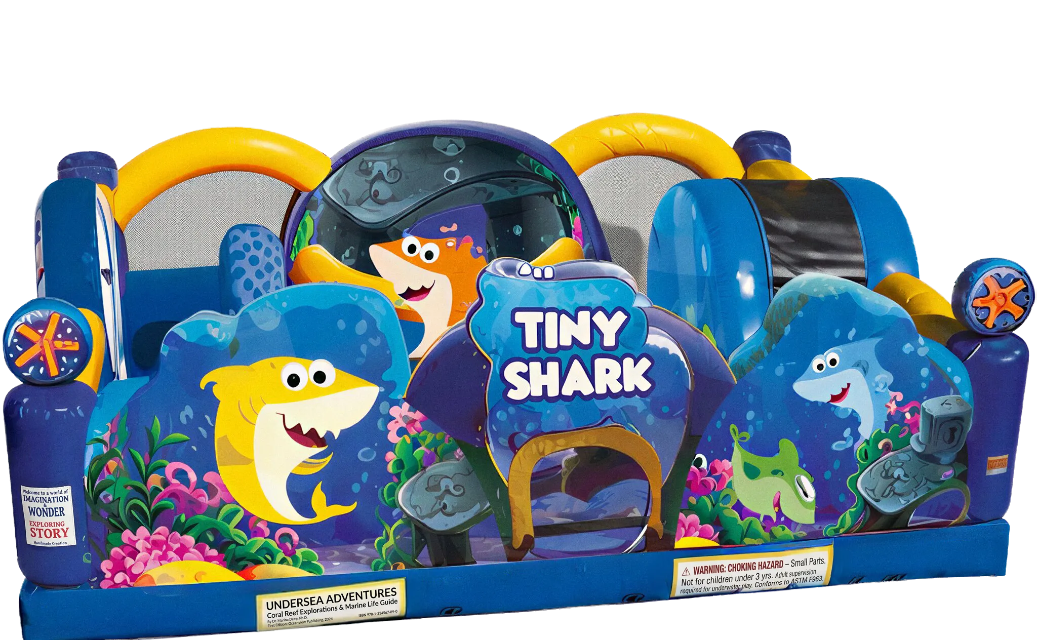 Jump into an ocean of fun with Astro Jump’s Tiny Shark Playground Moon Bounce Combo! Whether it’s a birthday party or a school event, indoors or outdoors, our Tiny Shark themed inflatable is sure to be the highlight of the day! Perfect for toddlers and children ages 4 and under, it is packed with fun and adventure where kids can climb, slide, and enjoy pop-up obstacles. You’ll have peace of mind as your little one plays for hours, designed with mesh sides for easy viewing for parents, it helps create a safe environment for everyone.