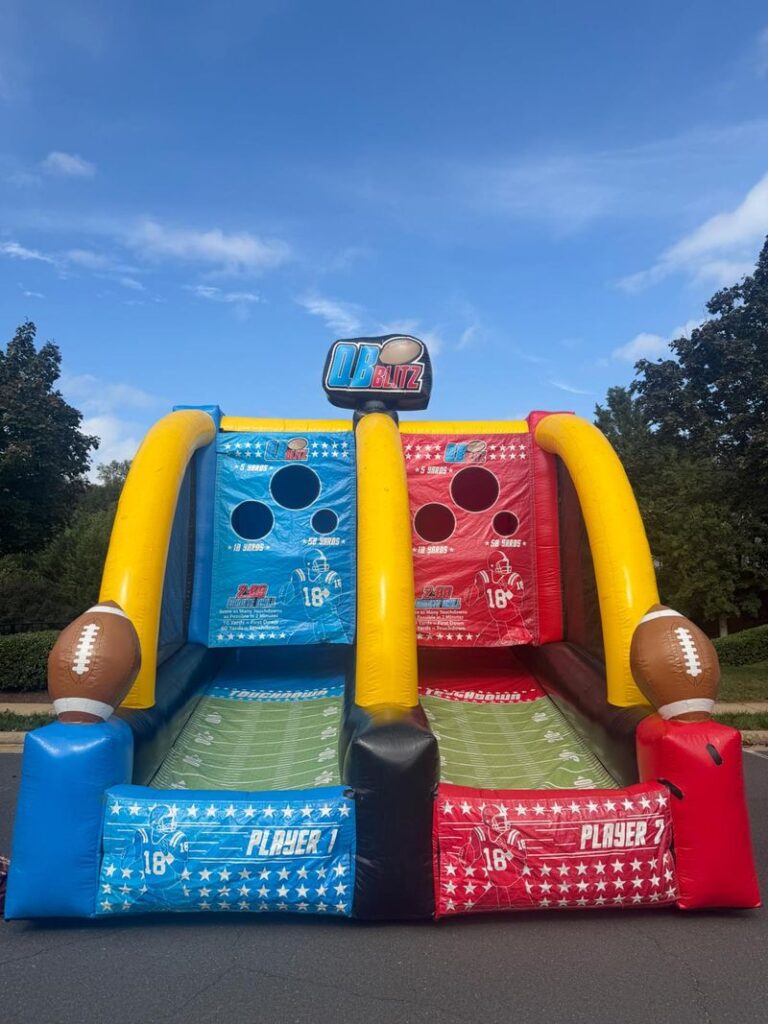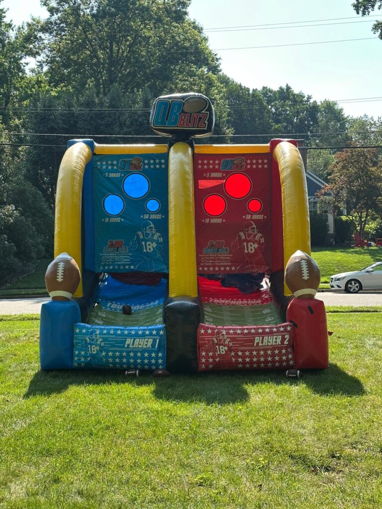 Whether you’re a diehard football player or an NFL fan who loves game day energy, this one’s for you! Our Quarterback Blitz Inflatable Game lets you put your throwing skills to the test in this two-person challenge. The goal? Keep the footballs out of your field. Every time you hit the target on your side, the ball shoots over to your opponent, but they’ll be doing the same thing right back at you!