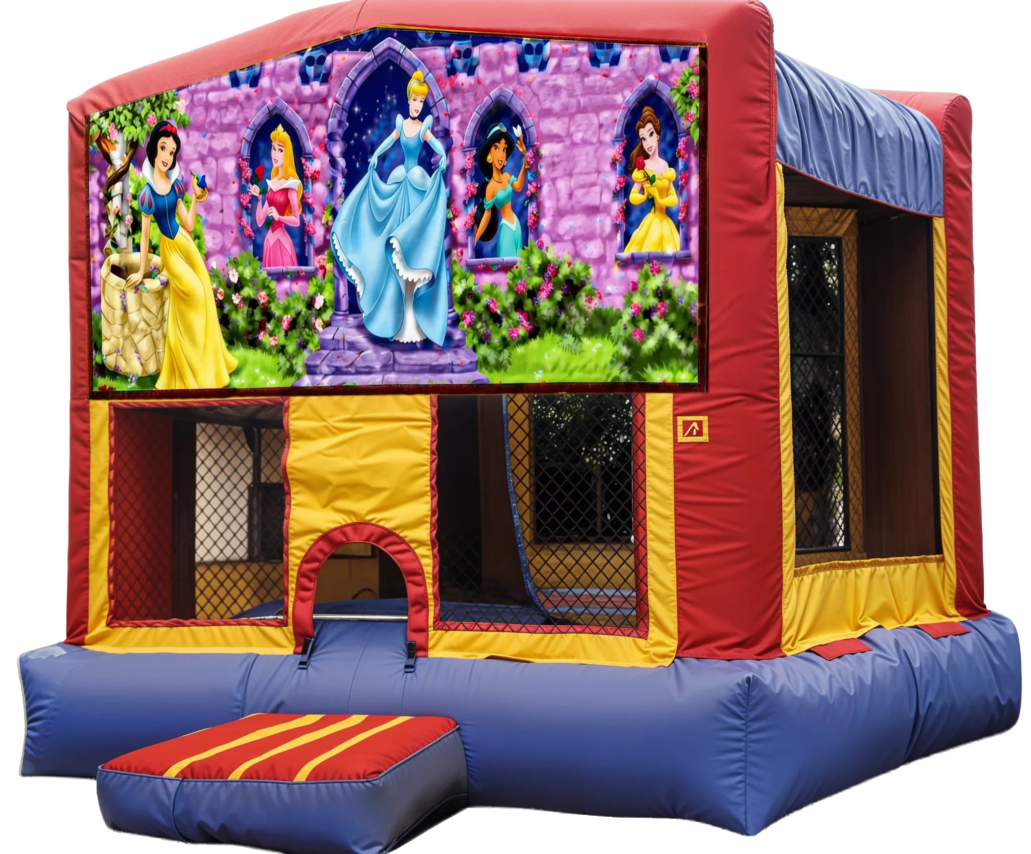 Give your kids the royal treatment with this Disney Princess Themed Moon Bounce. Showing five different princesses such as Snow White, Belle, Cinderella, Jasmine, and Aurora, it brings the magic right to your backyard. The life size artwork makes kids feel like they’re stepping into their own fairy tale. Plus, the built in entrance step makes it easy for even the littlest princesses to climb in and out safely.