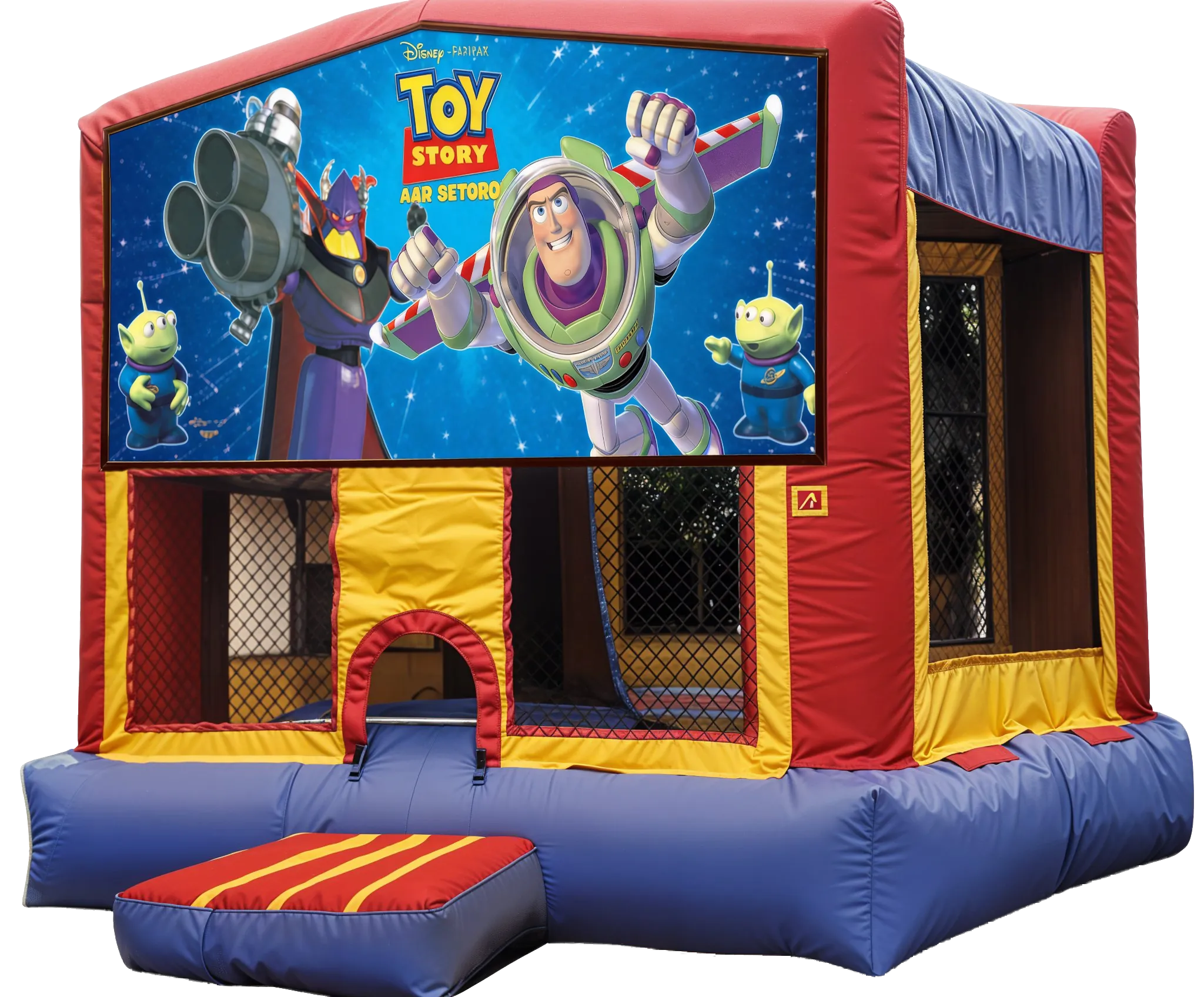 Are you ready to join Buzz Lightyear, Woody, and Jessie on the adventure of a lifetime? Our Toy Story Themed Moon Bounce brings the characters to life and will meet your kids’ expectations. Kids will have a blast bouncing around with their favorite characters, and it’s just one of the many themed moon bounces we offer here at Astro Jump.