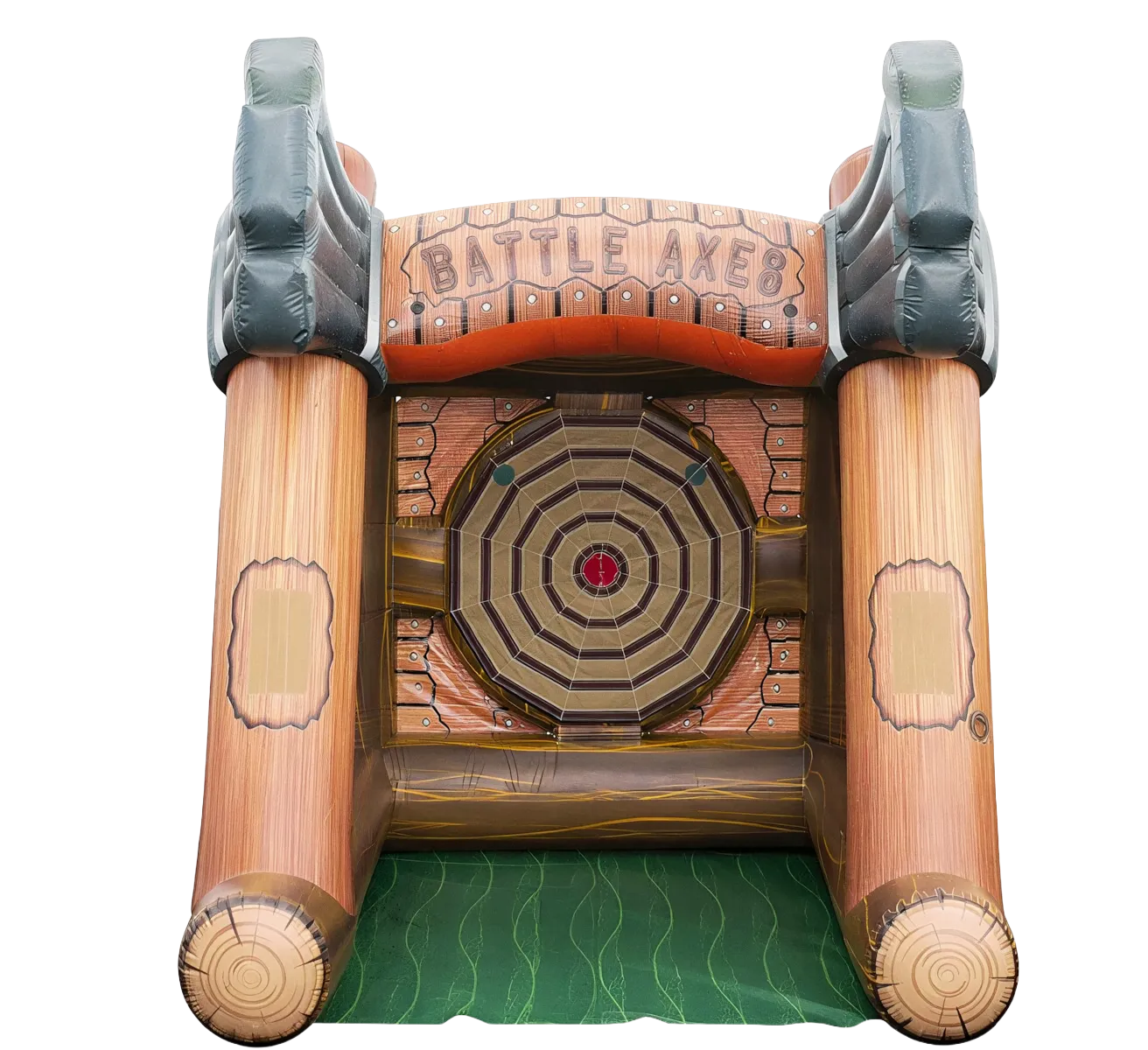 Our Inflatable Axe Throwing Game is a guaranteed crowd favorite for guests of all ages. With soft, velcro-tipped axes, this game is safe and easy to use so everyone can take turns aiming to test their skills. Whether you’re going for a bullseye or trying to outscore your friends, the friendly competition our battle axe brings makes this attraction a hit at any event you are having.