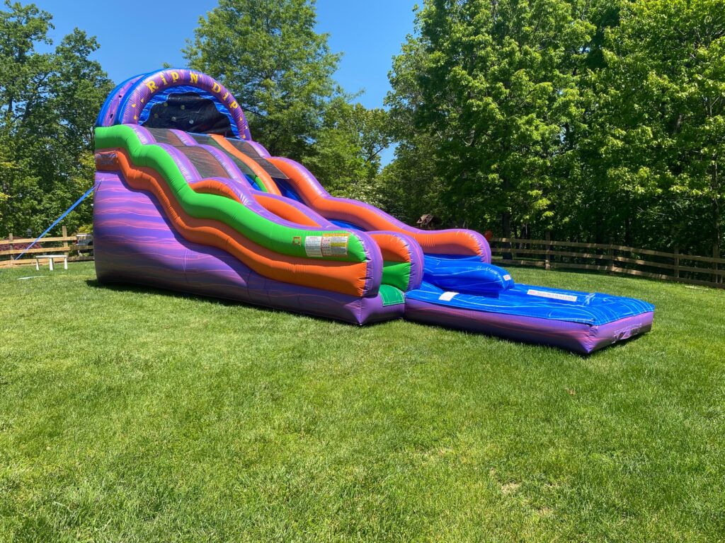 Turn your backyard into a water park with Astro Jump’s 16′ Bermuda Rip N Dip Water Slide! This inflatable dual lane water slide has two exciting bumps and a splashy pool that will bring all the excitement to your next event. Designed with a gentle incline, it’s not only perfect for younger kids, but a great choice for teens too. And don’t forget to add a sno cone machine, because no summer party is complete without one! Free delivery, setup, and pickup are included for this water slide to Washington D.C., and the following counties in VA and MD: