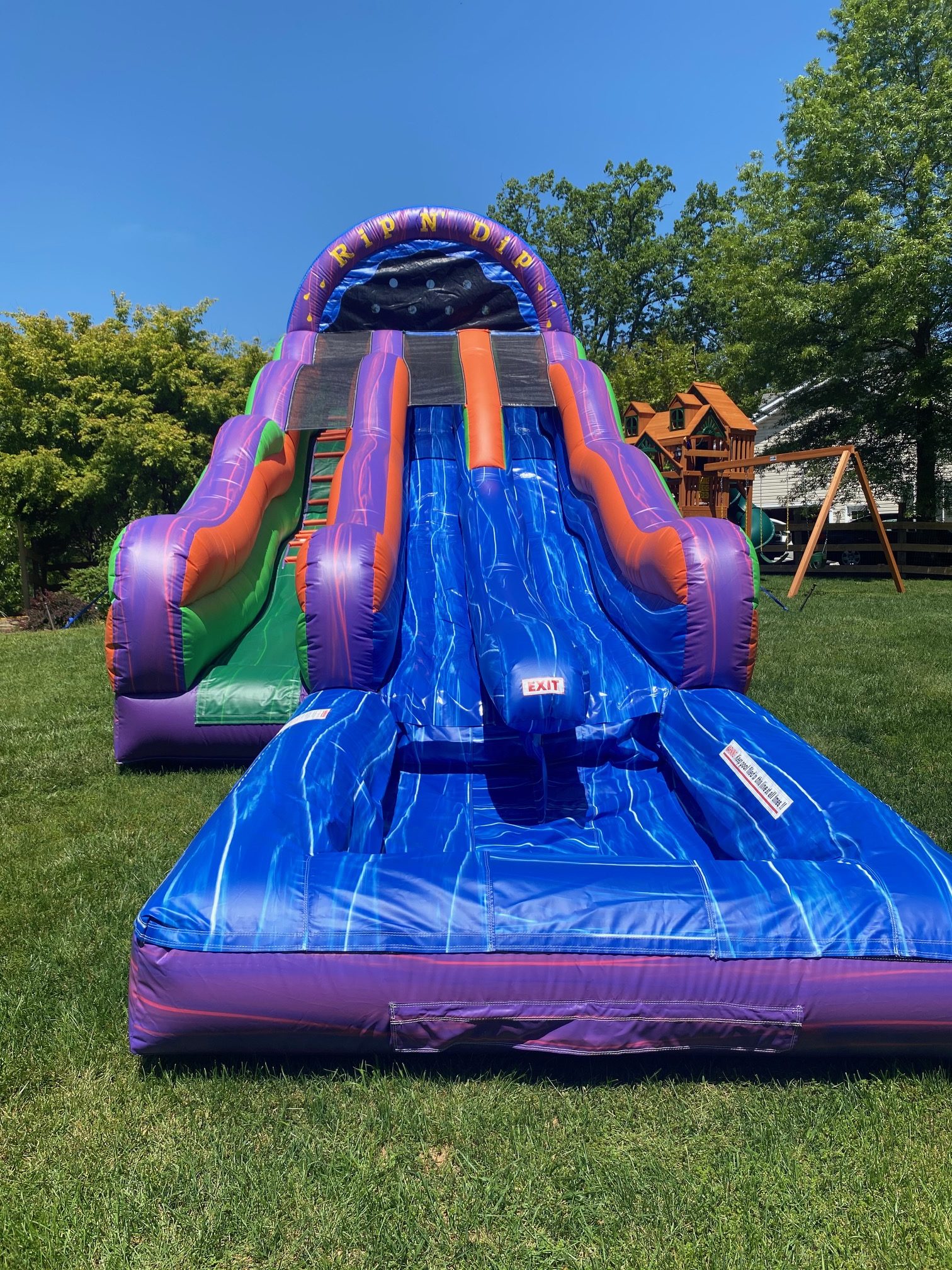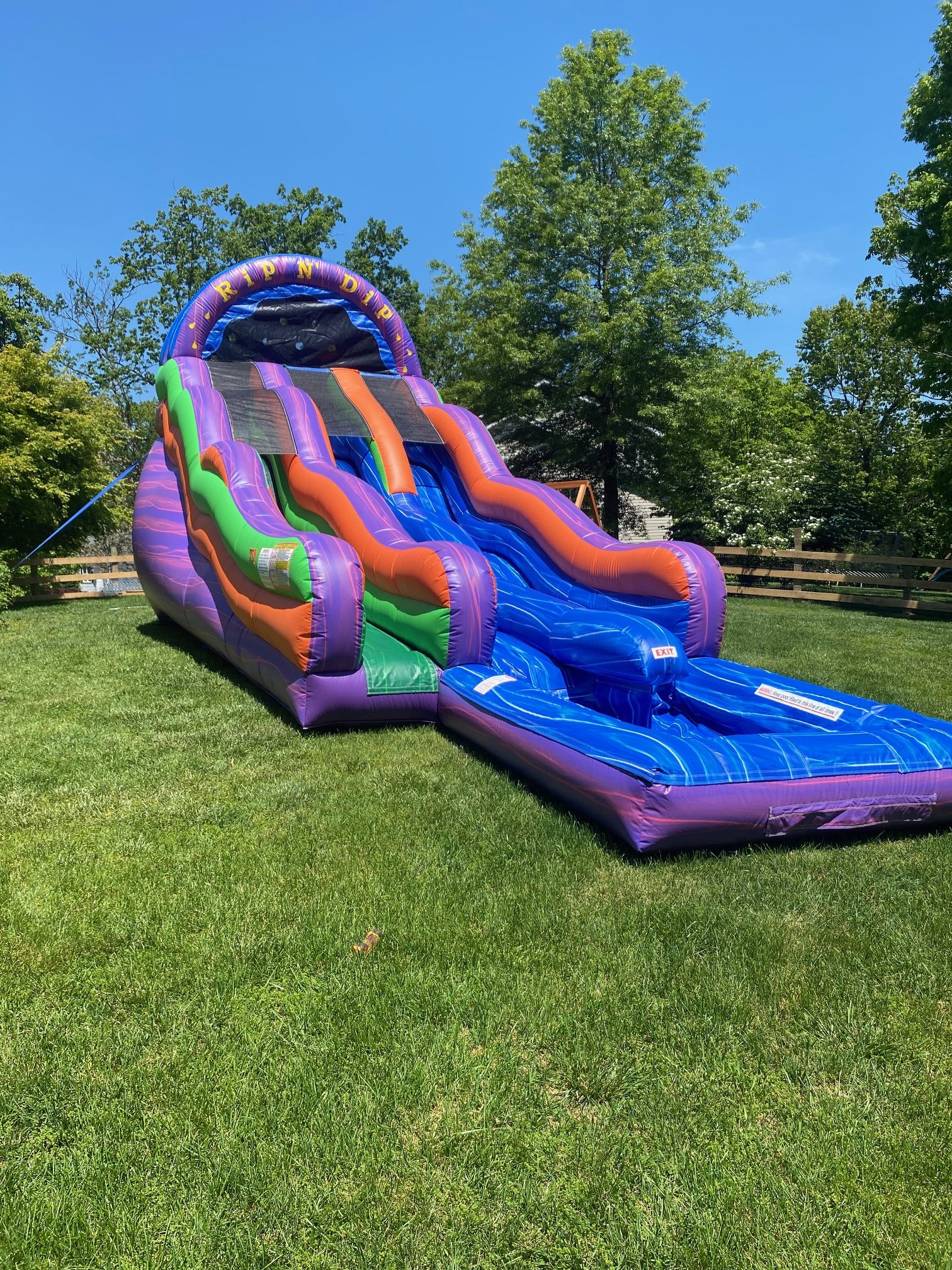 Turn your backyard into a water park with Astro Jump’s 16′ Bermuda Rip N Dip Water Slide! This inflatable dual lane water slide has two exciting bumps and a splashy pool that will bring all the excitement to your next event. Designed with a gentle incline, it’s not only perfect for younger kids, but a great choice for teens too. And don’t forget to add a sno cone machine, because no summer party is complete without one! Free delivery, setup, and pickup are included for this water slide to Washington D.C., and the following counties in VA and MD:
