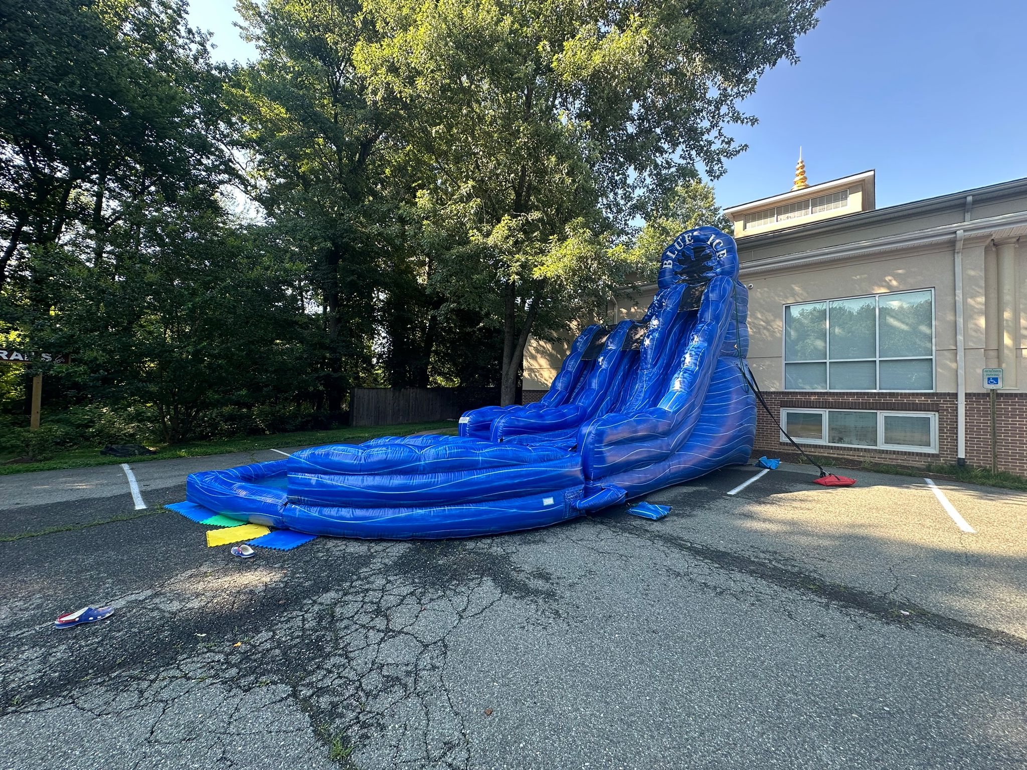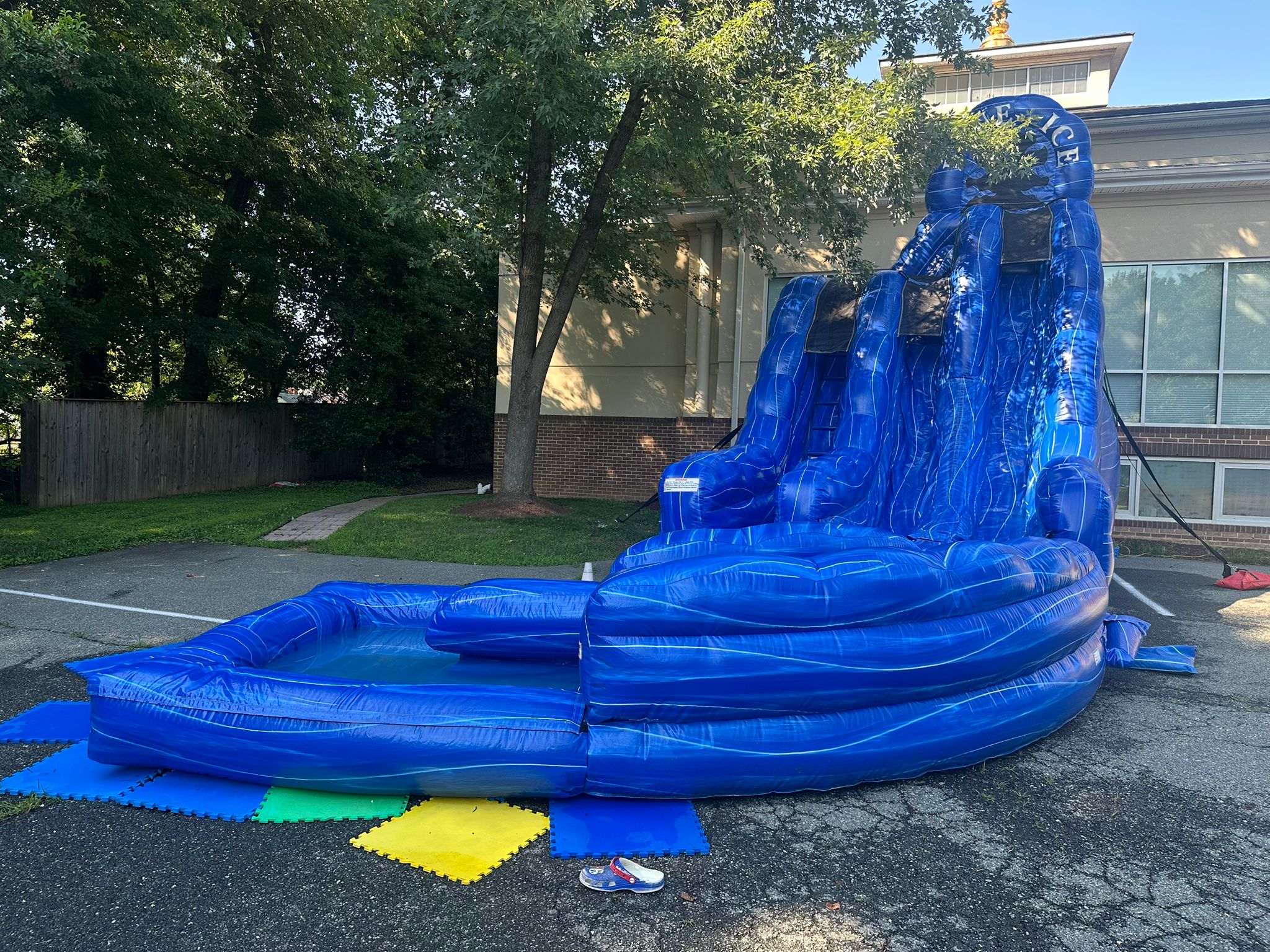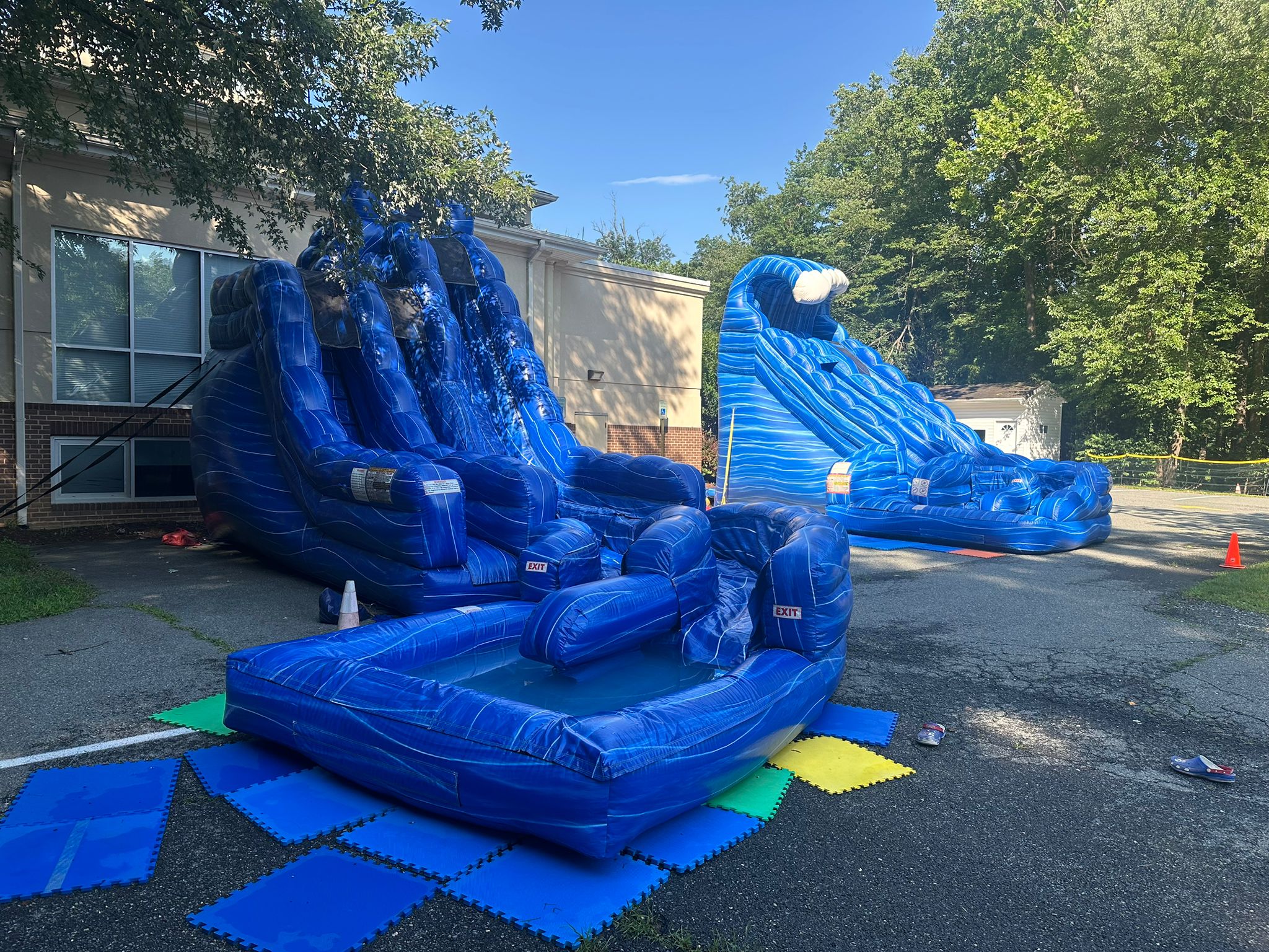 Astro Jump’s 20′ Blue Ice Dual Lane Water Slide is a favorite with our customers because it gives everyone options. It has two lanes, one lane is taller than the other, so kids and adults can pick their experience. Both lanes end in a big splash pool at the bottom, making it perfect for parties of all ages. If you love this slide but want to change up the look then check out our 20′ Crushed Ice Dual Lane Water Slide or 20′ Fire Rock Ice Dual Lane Water Slide for an exceptionally good time today!