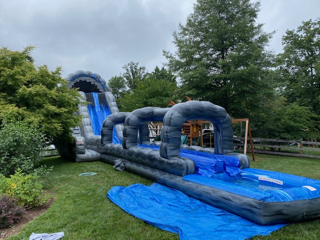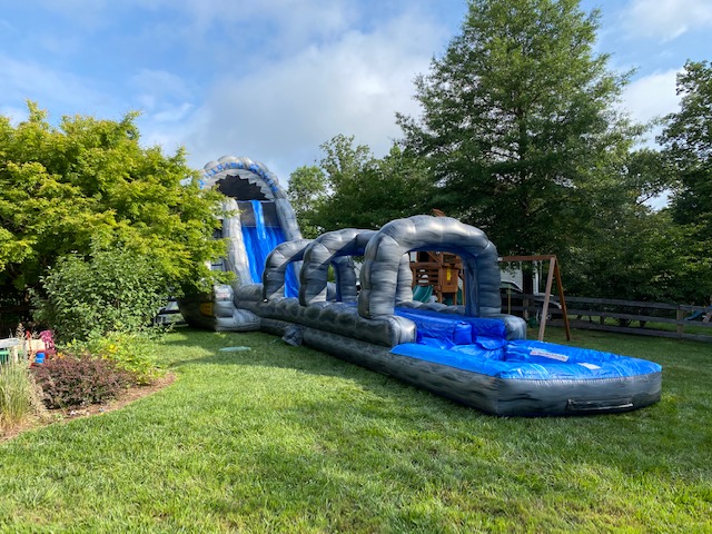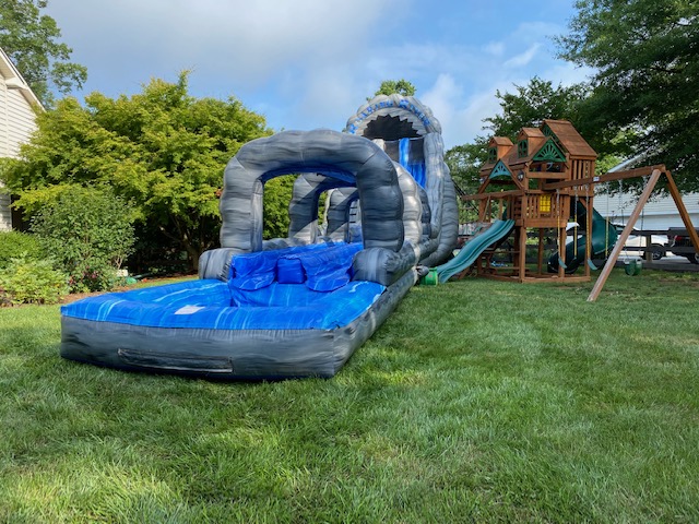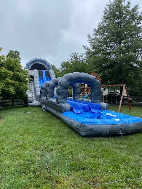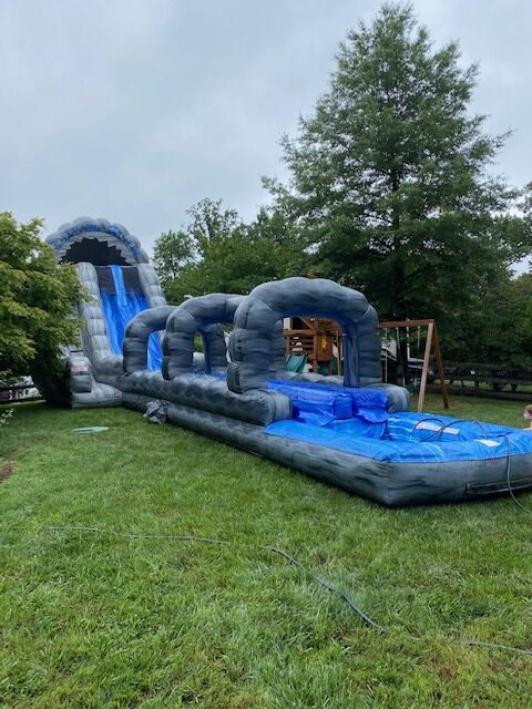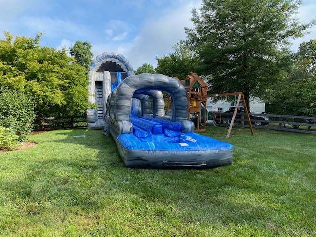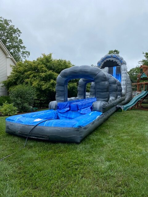 Our 60′ Roaring River Dual Lane Water Slide Slip-N-Splash Combo is made for nonstop summer fun. Riders can race down the slide and keep the excitement going as they slip-n-splash into a spacious pool at the end. It’s perfect for school or church events, summer camps, or backyard parties, and always a hit with kids of all ages.
